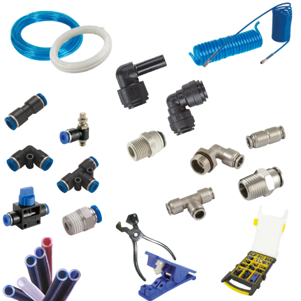 We supply and support a comprehensive range of fluid power/pneumatic tubing and hose, tube fittings and connectors, including BSP threaded and push-in fitting systems, valves, air preparation equipment, and associated ancillary pneumatic hardware. Components are selected with consideration given to operating pressure, temperature, media compatibility, duty cycle and installation environment, ensuring suitability for use within plastics manufacturing and other industrial applications.