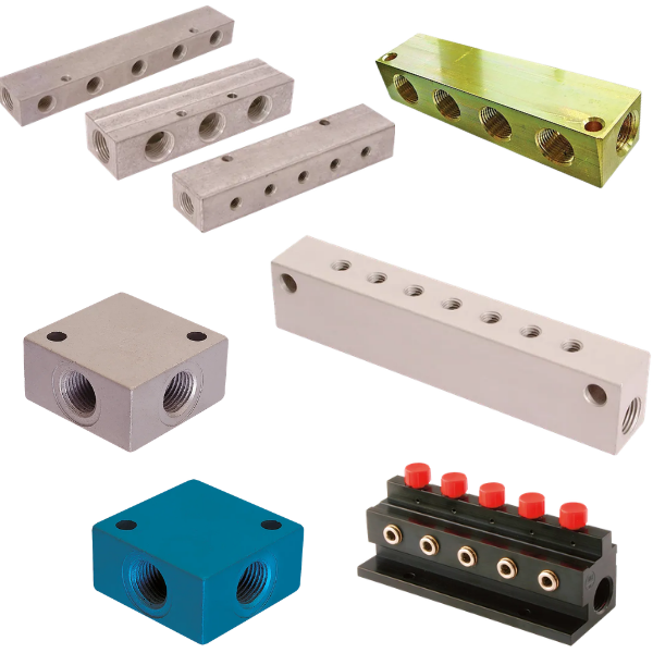 BSP manifolds are commonly used in pneumatic systems, compressed air distribution, lubrication systems, hydraulic circuits and industrial control panels.